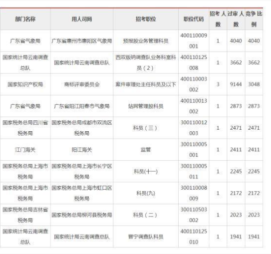 2019国考报名报名人数竞争最激烈十大职位