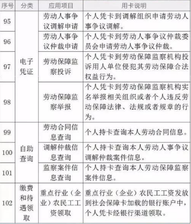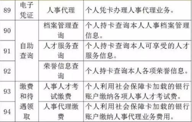 按照规划社会保障卡将可以实现人力资源社会保障领域102项业务应用概括为以下六大功能