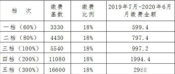 以浙江省社保缴费标准为例2019年浙江省全口径城镇单位就业人员平均工资的60%至300%之间选择缴费基数如下图所示