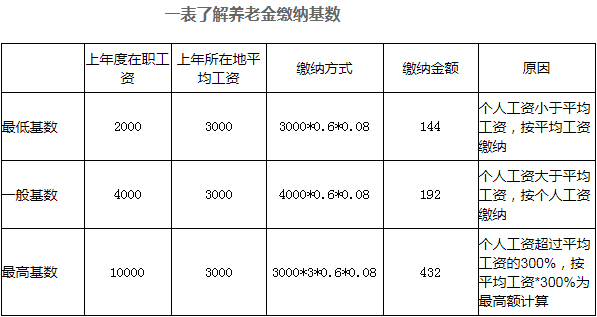 2.职工个人月平均工资收入低于全省上年度在岗职工月平均工资60%的,缴费基数按全省上年度在岗职工月平均工资的60%核定;职工个人月平均工资收入高于全省上年度在岗职工月平均工资300%的,缴费基数按全省上年度在岗职工月平均工资的300%核定。用人单位以及参保人员不得通过补缴提高参保人员以前缴费年度的缴费基数;