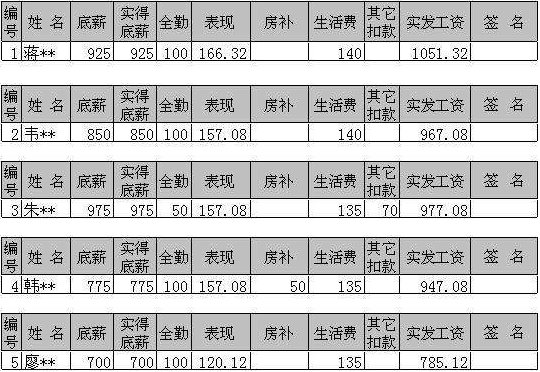 1.工资条内容