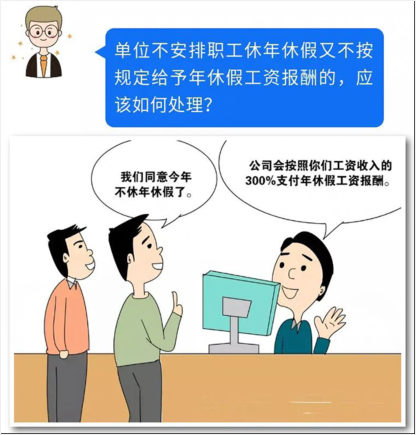 《职工带薪年休假条例》第七条规定:“单位不安排职工休年休假又不依照本条例规定给予年休假工资报酬的,由县级以上地方人民政府人事部门或者劳动保障部门依据职权责令限期改正;对逾期不改正的,除责令该单位支付年休假工资报酬外,单位还应当按照年休假工资报酬的数额向职工加付赔偿金;对拒不支付年休假工资报酬、赔偿金的,属于公务员和参照公务员法管理的人员所在单位的,对直接负责的主管人员以及其他直接责任人员依法给予处分;属于其他单位的,由劳动保障部门、人事部门或者职工申请人民法院强制执行。”
