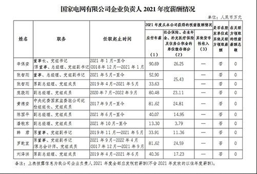 近日,国家电网、中国华能、华电集团等多家电力央企陆续披露2021年度企业负责人薪酬。其中,薪酬最高的是国家电网有限公司董事长、党组书记辛保安,其年薪90.69万元。