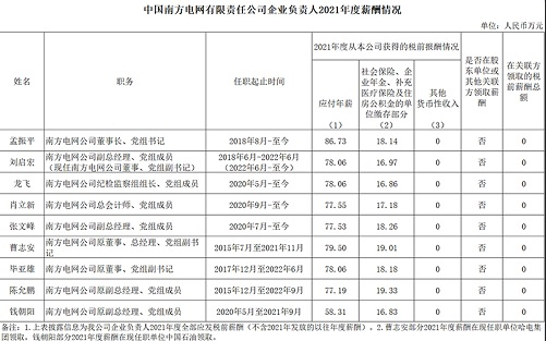 1月30日,中国南方电网有限责任公司披露企业负责人2021年度薪酬情况。南方电网董事长、党组书记孟振平年薪86.73万元。