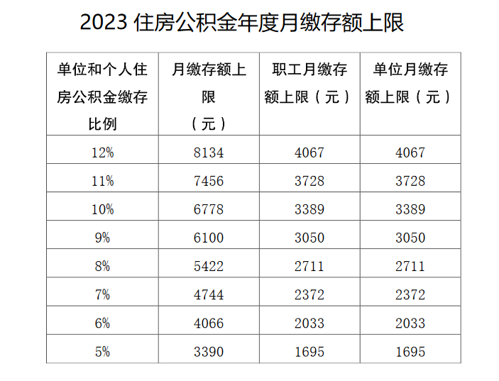 2023住房公积金年度缴存比例为5%-12%,单位可自主选择。具体缴存比例对应月缴存额上限见附件。