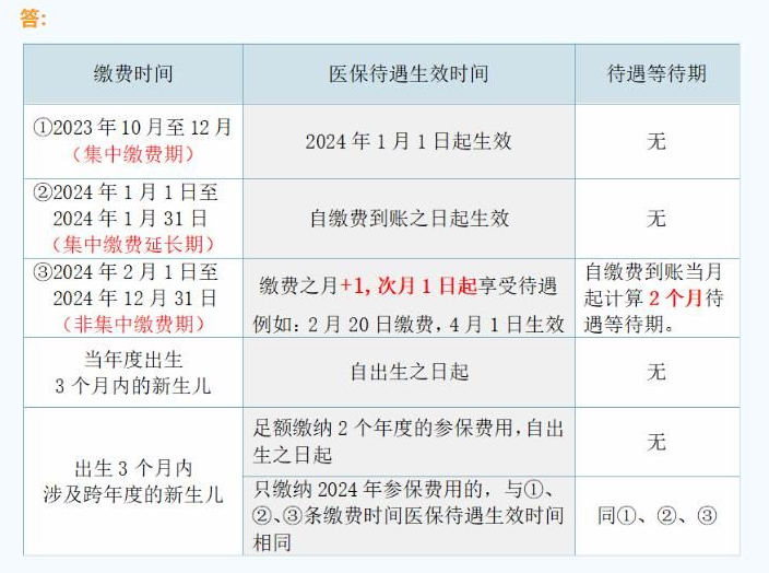问:3、城乡居民医疗保险缴费后何时能够正常享受待遇?