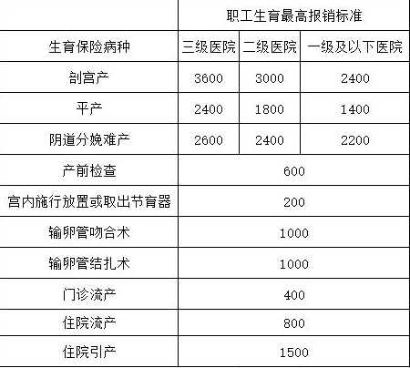 生育医疗费用的报销标准为定额付费,按照医院等级的不同、生产方式的不同而各异。