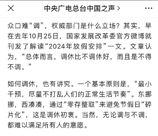 “五一其实只放一天”近日冲上热搜,再度引发“假期该不该调休”的热议。如何调休,也有讲究。一个基本原则是,“最小干预,尽量不打乱人们的正常生活节奏”。