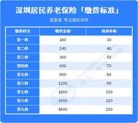 同样以深圳为例,来看看居民养老保险的交费标准: