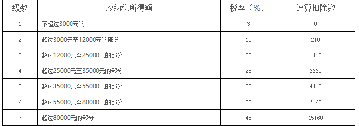(2)、按照新的月度税率表查找的适用税率为3%,速算扣除数为0