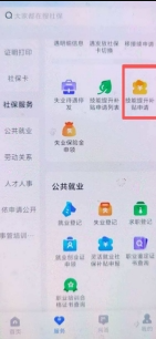 请打开并登录智慧人社APP或微信公众号,在“服务”页面找到“技能提升补贴申请”(如下图所示),点击进入。